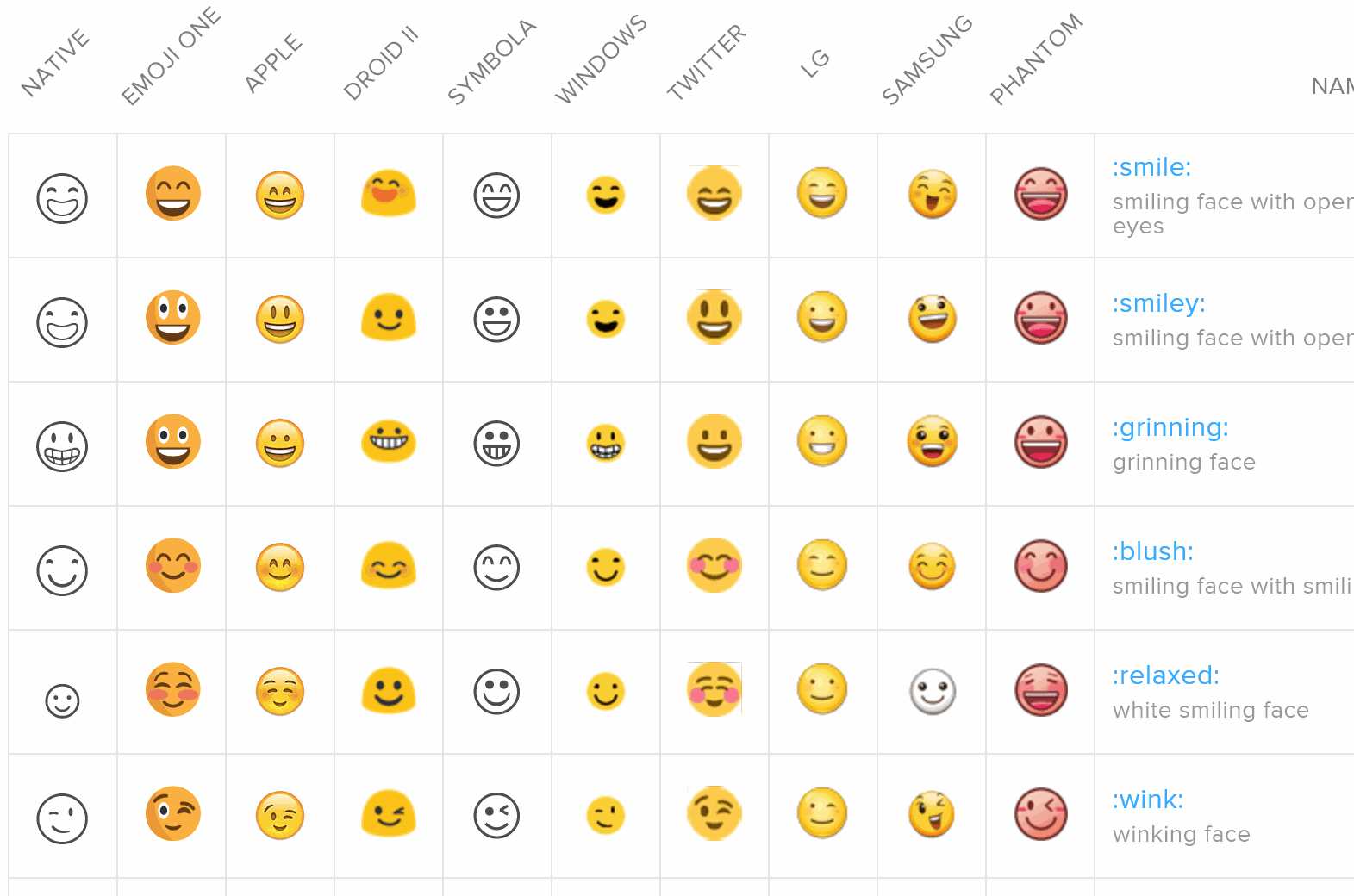 There's a number of Emoji Families or "sets" to choose from, so once we added Emoji One we also added the other common families: Google / Android, Apple / iOS, Twitter, and of course Emoji One which is the default. We've also recently added Windows and Messenger emoji.