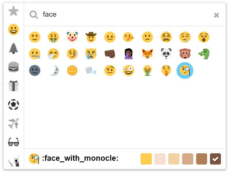 We've since upgraded the Emoji picker even further to add text search and skin tone selection: