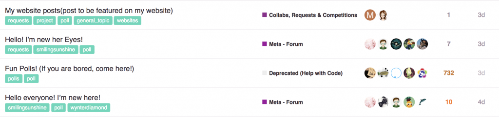 Hopscotch is an example of a Discourse site that embraced tags wholeheartedly, letting the community organize itself as it saw fit.