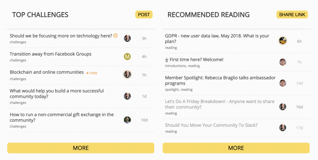 FeverBee surface relevant content into specific areas of their custom homepage using tag queries. Tagging specific topics as challenges or reading pushes them into specialized feeds. This helps first time visitors find the information that they're looking for.