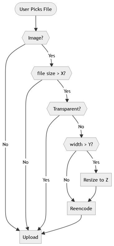 Because of all that, very early into the project we received feature requests about Optimizing images before uploading. This is motivated by staff looking to make it easy for their users to share pictures while being mindful of the time it takes to upload files from spotty mobile connections.