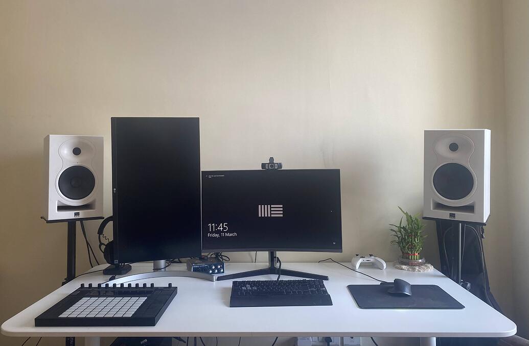 - Mega-desk! Enough space for all my work + gaming + music gear + bamboo plant