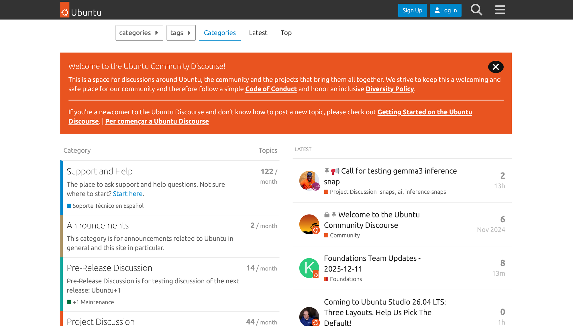 Ubuntu's Community Hub brings together users across all official Ubuntu flavors, handling everything from technical support to event coordination. Over 2,000 topics cover installation problems, software troubleshooting, and hardware compatibility.