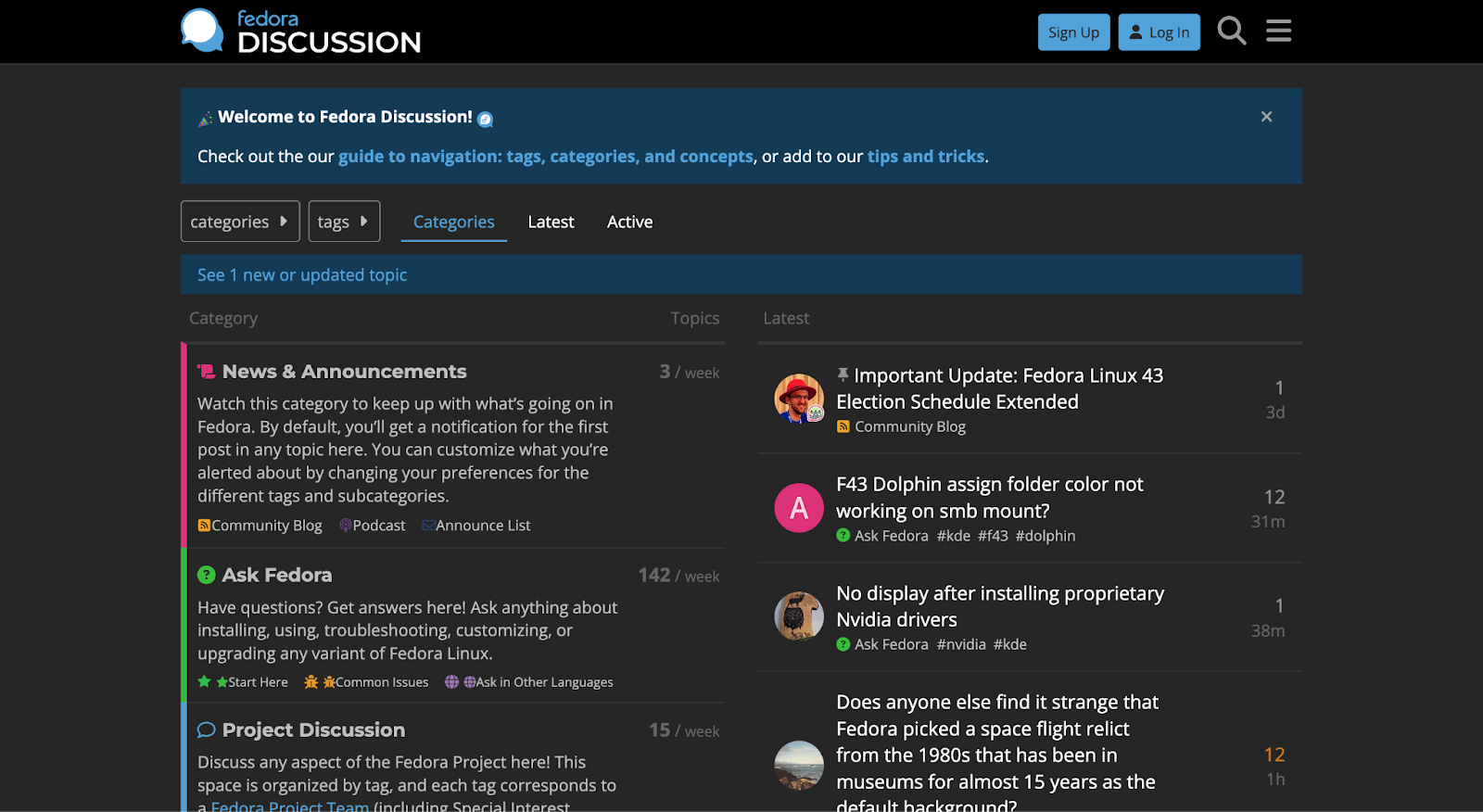 The Fedora Project runs one of the most active Linux distribution forums on the web. Their Discussion hub serves both users troubleshooting installations and contributors coordinating the next release. Browse through Ask Fedora and you'll find detailed threads about getting specific hardware working, resolving boot issues after kernel updates, and optimizing system performance. The forum even supports multiple languages through user groups.